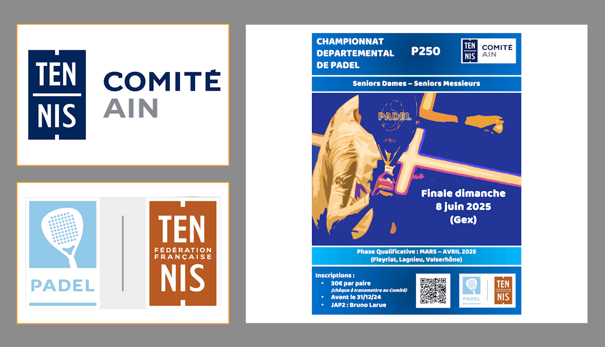 Le lancement du premier championnat de l'AIN de Padel P250 seniors Dames et Messieurs avec 12 paires chez les dames et 48 paires chez les Messieurs est effectif. Les phases préliminaires se dérouleront à Lagnieu, Fleyriat et Valserhône et la finale à Gex le samedi 7 et dimanche 8 juin 2025.