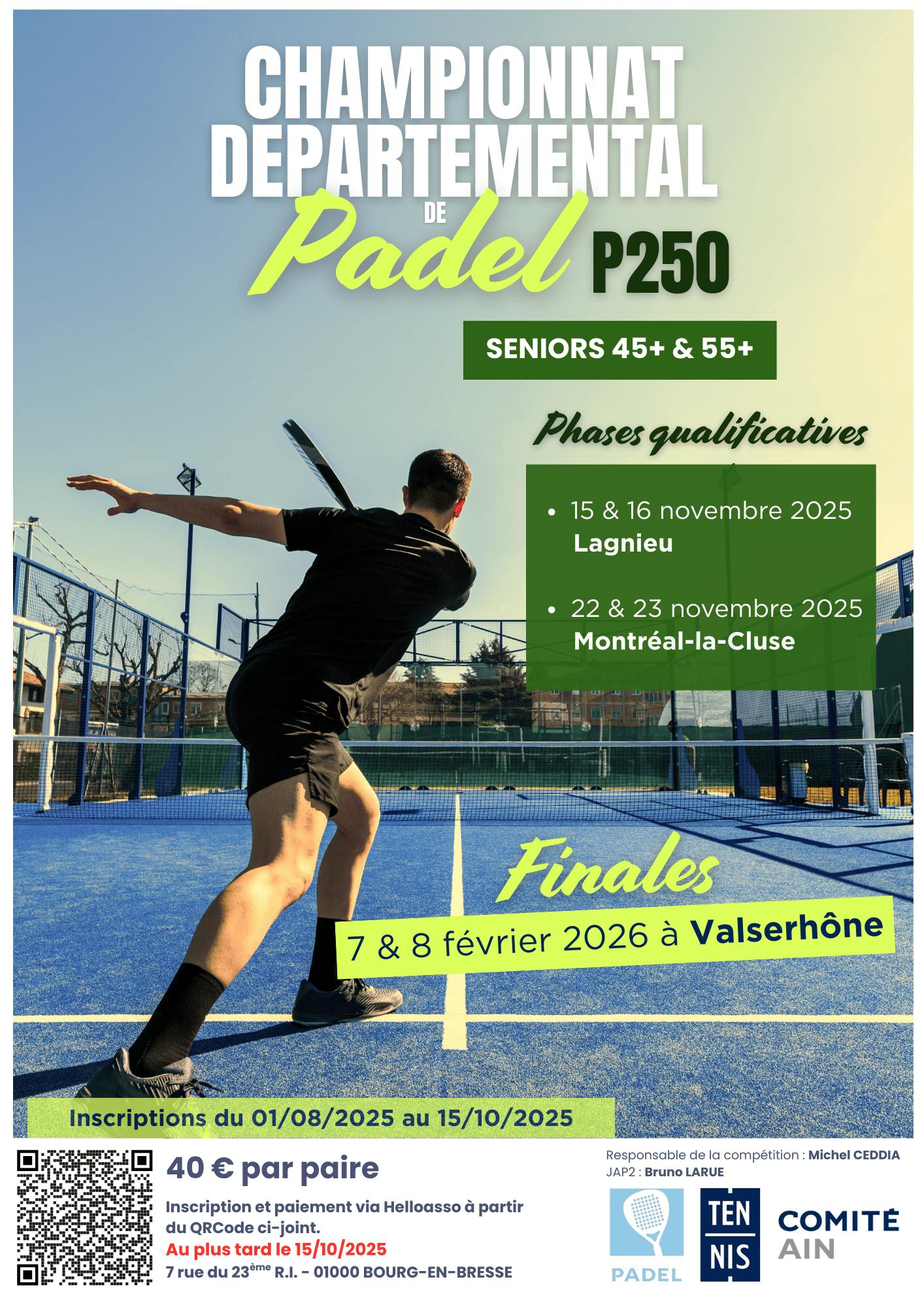 Championnats de l'AIN de PADEL 2026 - Seniors 45+ et 55+ - P250