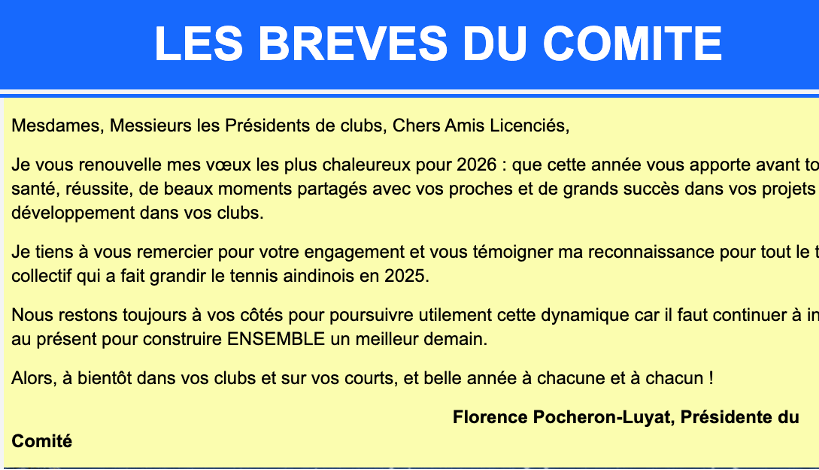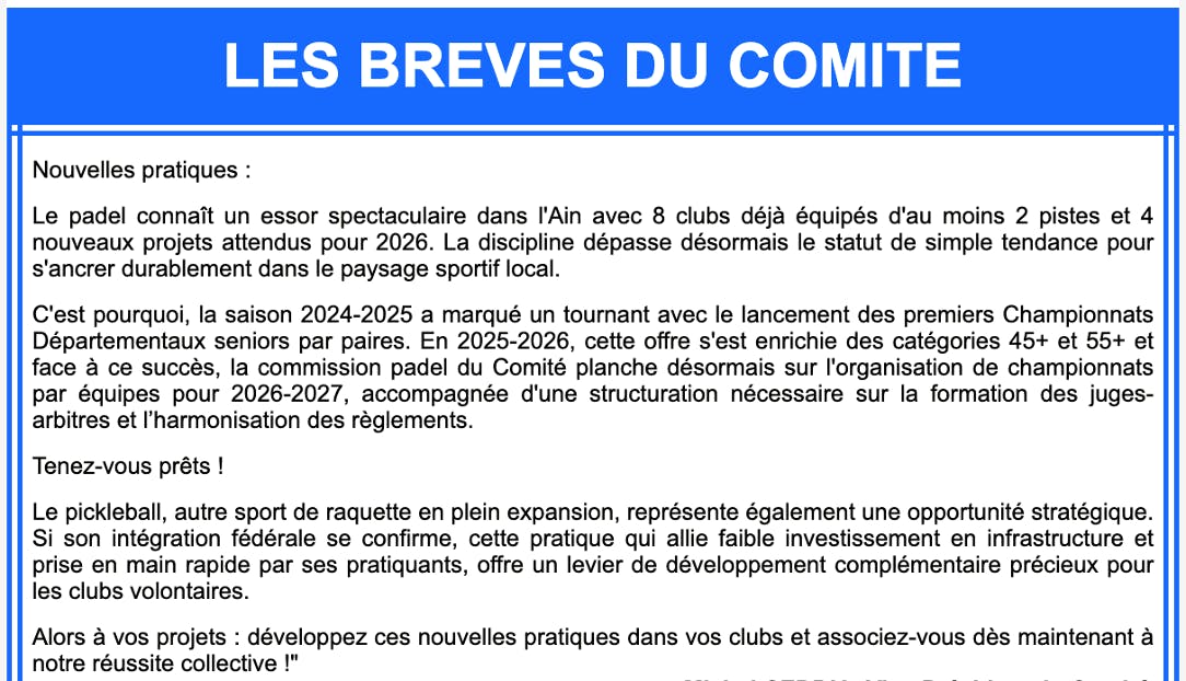 Si vous souhaitez apporter des idées pour le rendre encore plus attractif, n'hésitez pas à nous contacter à comite.ain@fft.fr.