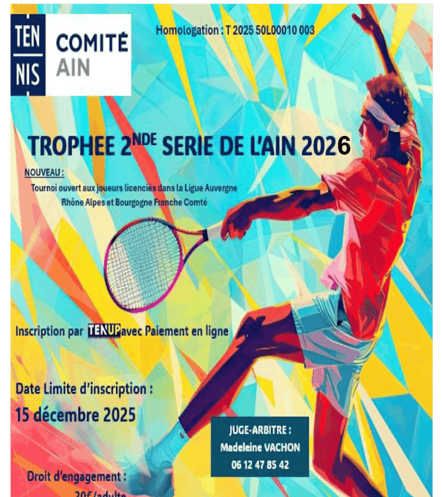 3 octobre 2025 à 19h au TC Pont d’Ain